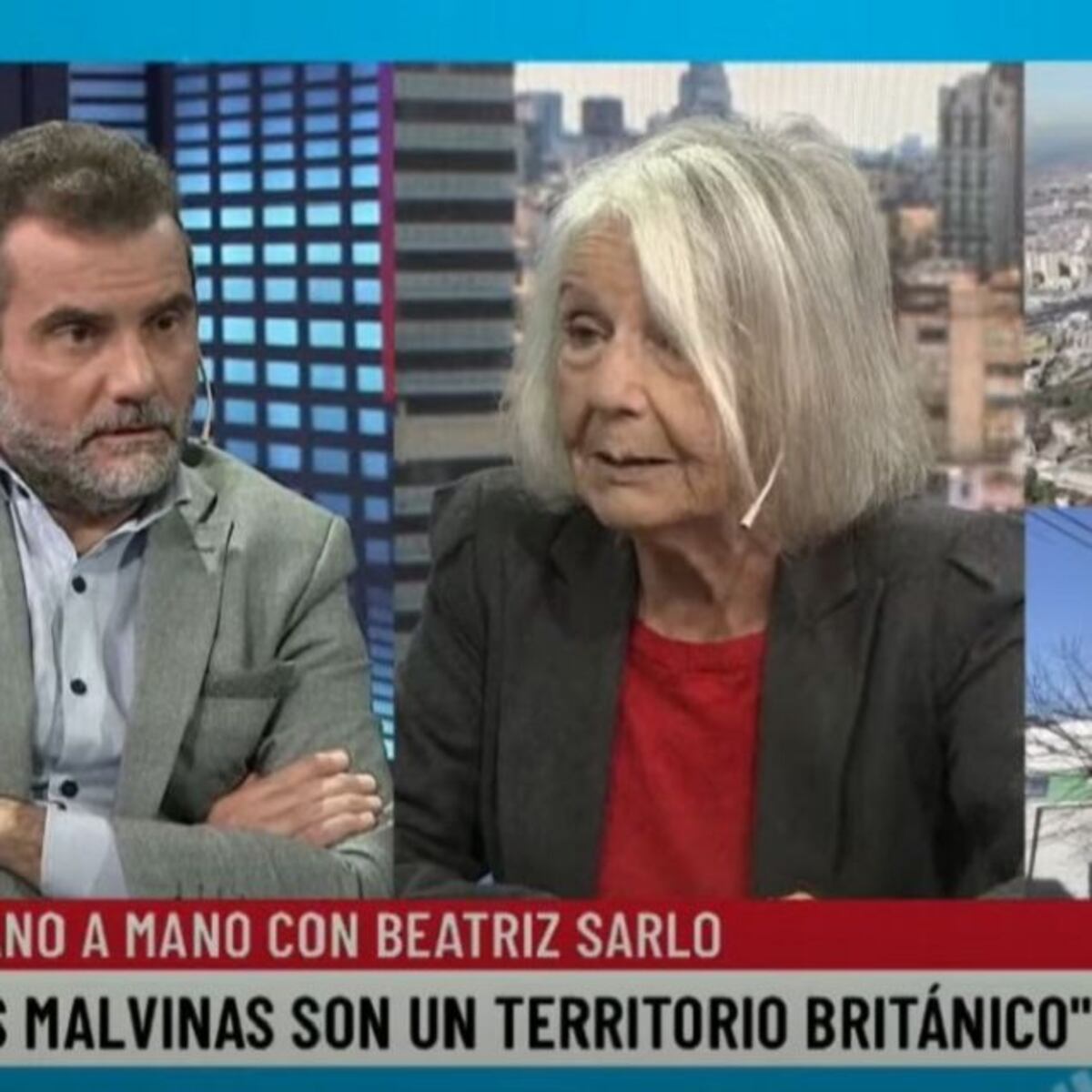 Impresentables declaraciones de Beatriz Sarlo en televisión. El rostro del conductor demuestra su asombro.Web