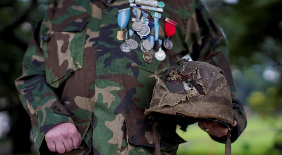 No son solo medallas que suenan cuando chocan, son reconocimientos a su entrega patriótica. Defendieron nuestra soberanía, la defienden y la seguirán defendiendo. Imagen del casco perforado del VGM Jorge Altieri, soldado de Malvinas.