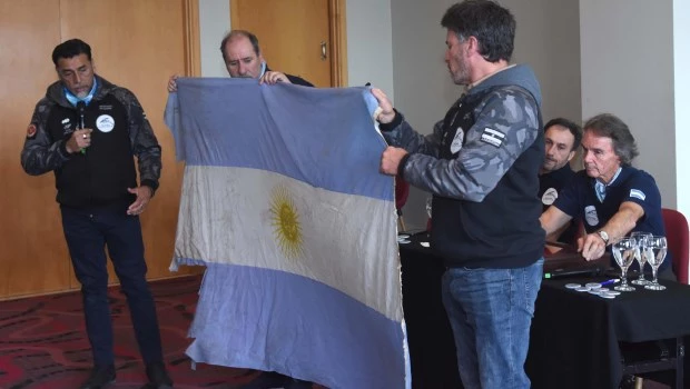 Tras resaltar la importancia y el significado de la lealtad hacia la bandera, Cruz recordó la manera en que pudieron traer de las Malvinas una bandera argentina que exhibieron ante los presentes.